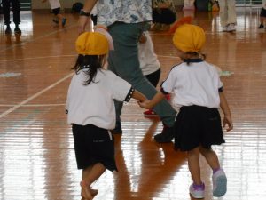 手をつないで仲良く体操をするお友だちも…( *´艸`)