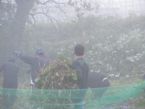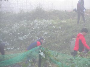 保護者の方のご協力のもと、お芋の畑のつる上げを行いました。