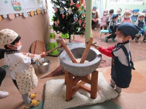 こども園でおもちつきを行いました!