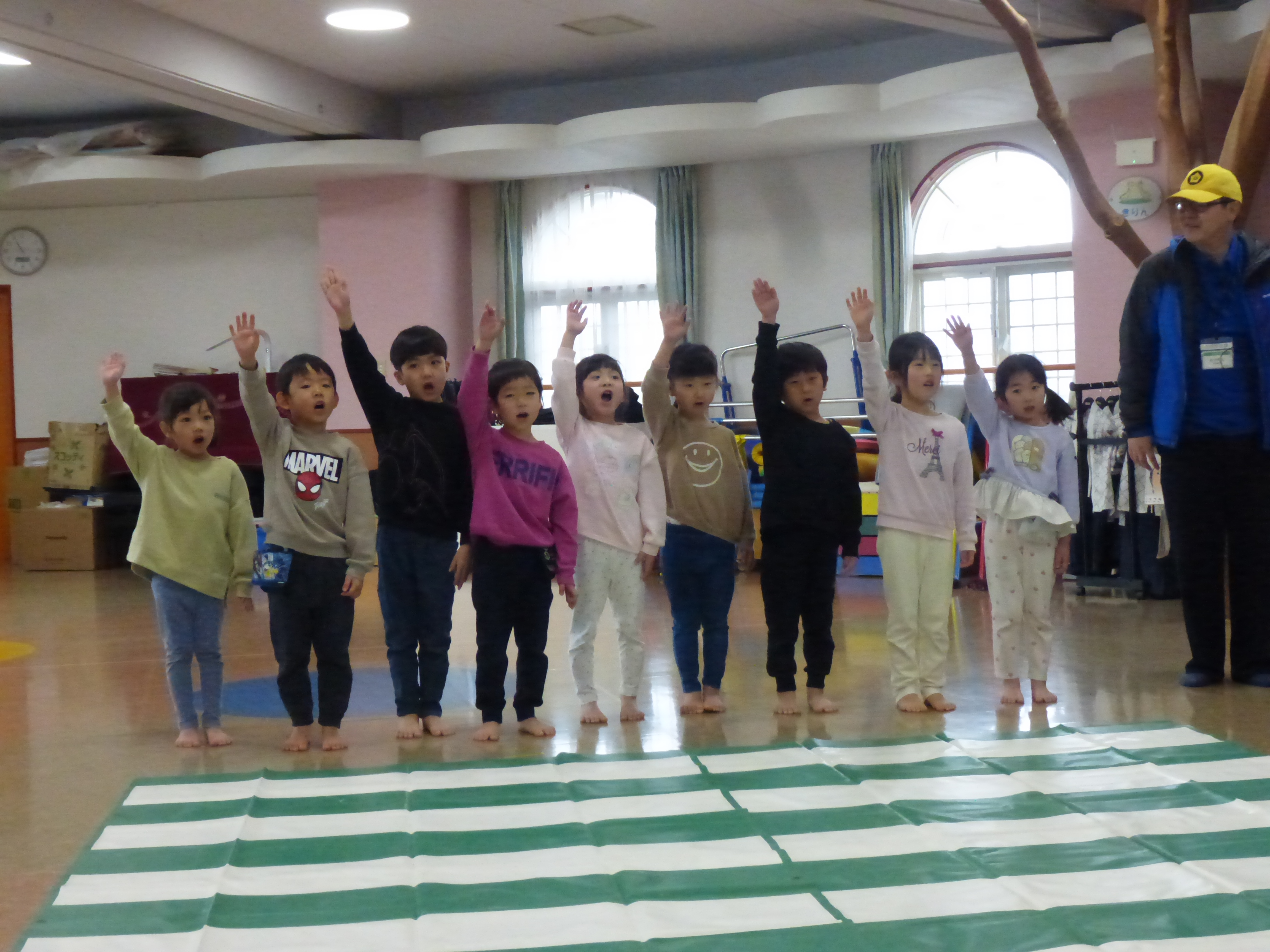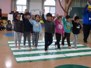 ちょっと緊張しながらも、学んだことをやってみようとしたり、大きな声で掛け声を言ったりする姿が見られ、よい経験になりました。