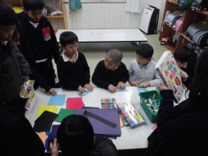 色紙遊びをする。