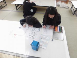 自分で塗りたい絵を選んで色鉛筆で細かいところまで塗っていた。