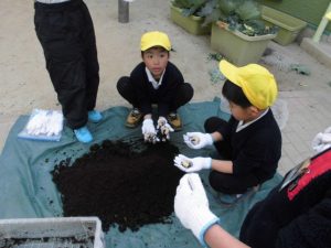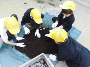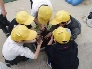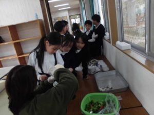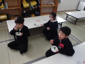 給食の先生に湯がいてもらいマヨネーズをつけてみんなで食べた。