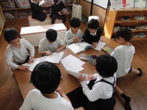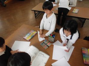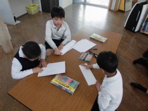 本を見たり自分で考えて作ったり個性あふれる紙飛行機ができた。いざ、グラウンドで飛距離と滞空時間を測定した。