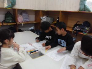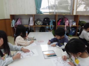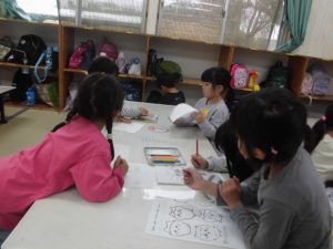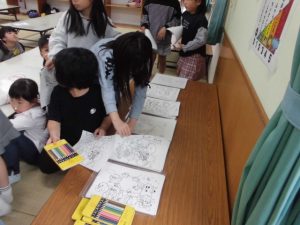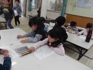 本物のように同じ色で塗る子どもや好きな色を組み合わせて塗る子どももいて個性あふれる作品ができた。