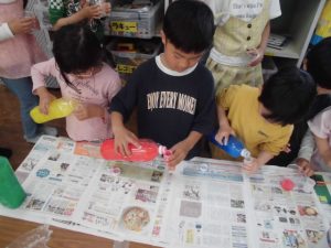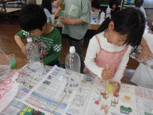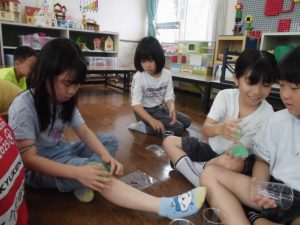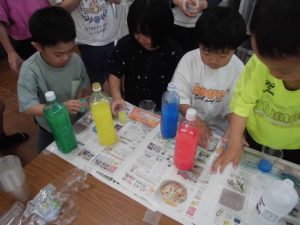 科学遊びでスライム作りをする。
