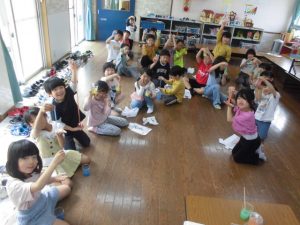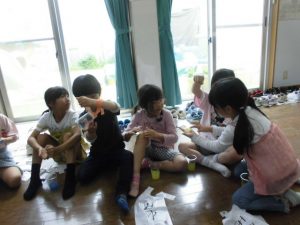 作り方のお話しを聞いていざ作り始めた。手順通り作っていきみんなできた。