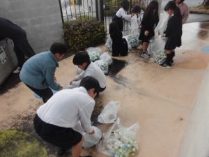 3人一組でチームを作り袋いっぱいにキャップを入れてくれた。たくさんのキャップにビックリする子どももいた。