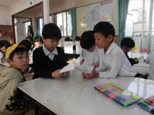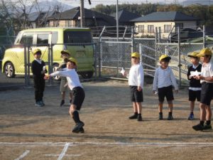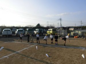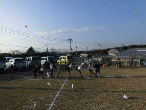 上のグラウンドに移動して距離と滞空時間を測り順位を決め大会を行う。