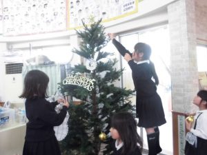 ツリーの飾りつけでは子ども達が飾りのバランスを考えながら上手に飾ってくれた。