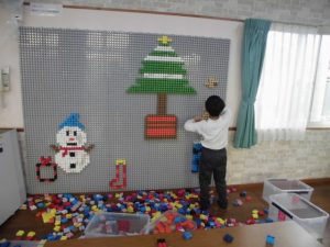 壁面作りでは、ツリーやサンタ、雪だるまなどクリスマスバージョンの壁面を作ってくれた。