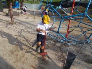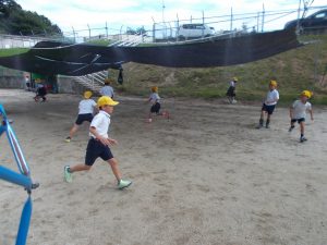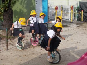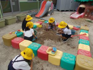 色んな鬼ごっこや砂遊び、一輪車に三輪車、たくさん遊んで汗をたくさんかきました。