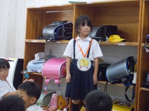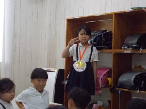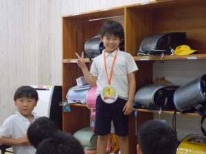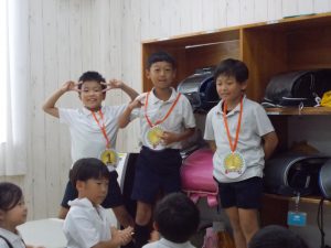 学童で1学期(主に夏休み)に頑張ったお友達にメダル授与をした。