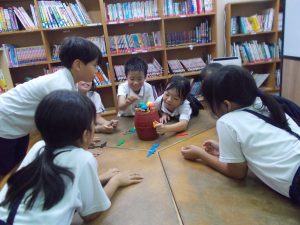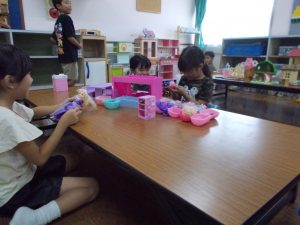 初めてする遊びだったので説明をよく聞き、分からない子には自分たちで説明していた。部屋ではお馴染みの遊び一工夫して遊んでいた。