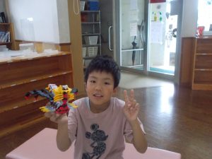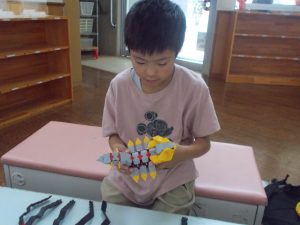 ラQでポケモンを作る。説明書をよーく見て作っていた。
