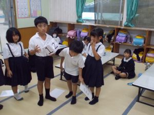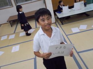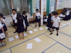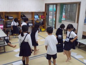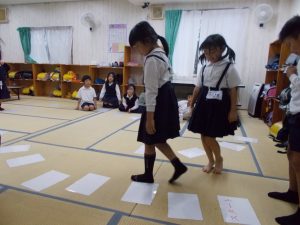 初めは参加者が少なかったがしている子どもを見て「私もやりたい」「僕も~」の声が広がり多くの参加の中でゲームを行った。