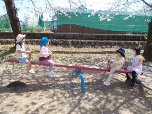 子ども達と一緒にお花見をしました。さくらの花が満開に咲き誇り、気持ちのいい陽気の