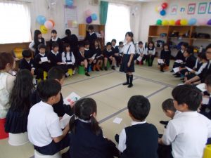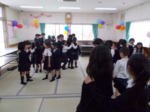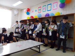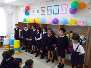 おわかれ会をする。3年生が主体となって動いてくれた。3年生同士で協力しながら動いてくれた。1.2.3年生もみんな喜んでいた。